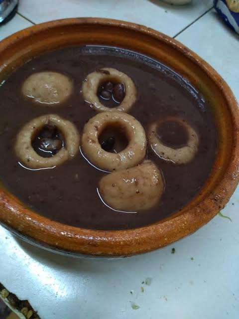 Presentación: En la mesa, los frijoles quebrados y las bolas de masa se presentan en un tazón o plato hondo. Tradicionalmente, los frijoles ocupan el centro, mientras que las bolas de masa se colocan encima. Esta disposición permite a los comensales disfrutar de la suavidad de los frijoles y la textura masticable de las bolas de masa en cada bocado.